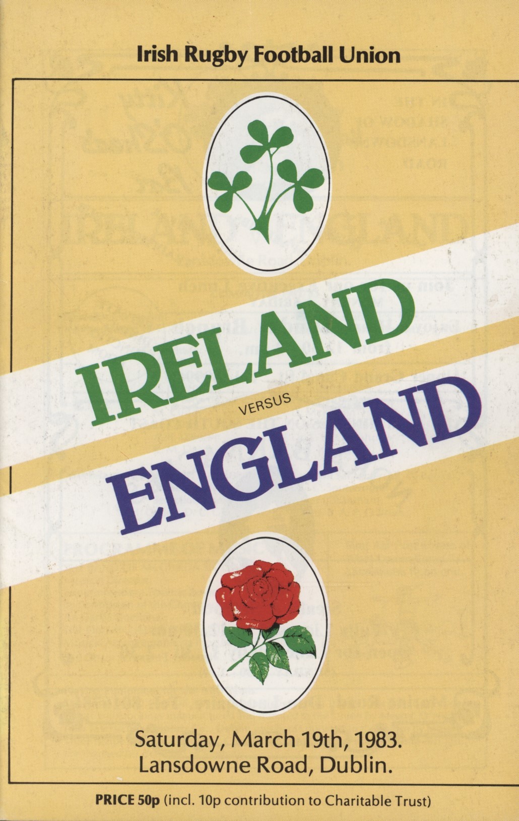IRELAND V ENGLAND 1983 RUGBY UNION PROGRAMME