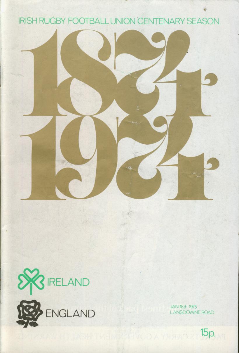 IRELAND V ENGLAND 1975 RUGBY PROGRAMME
