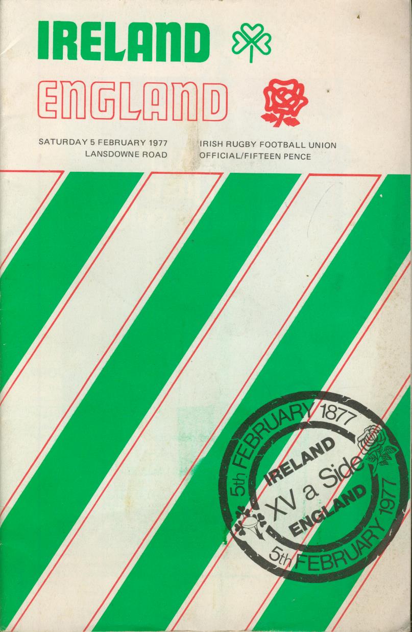 IRELAND V ENGLAND 1977 RUGBY PROGRAMME