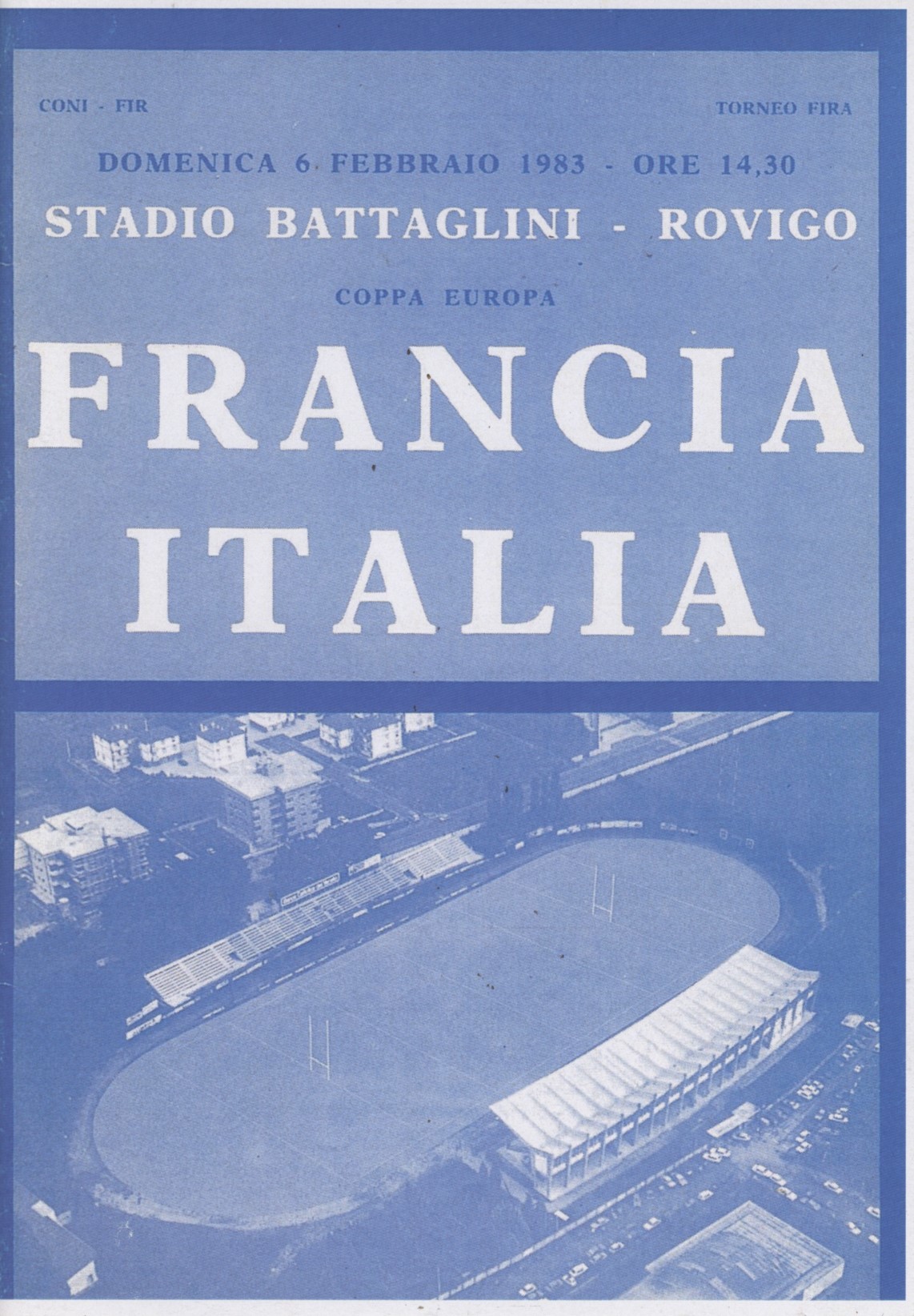 Official rugby union programme for the match played in Rovigo on February 6th, 1983.