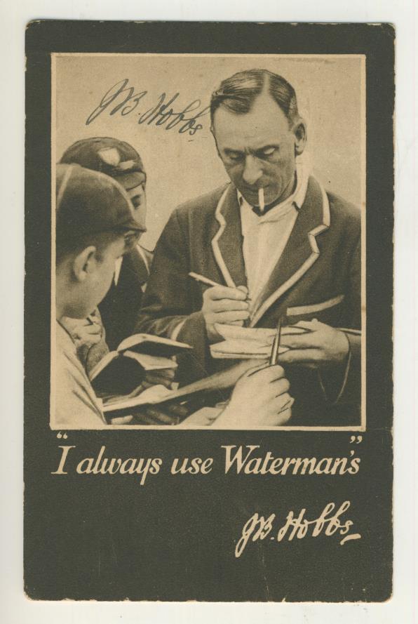 Cricket » Cricket Postcards » Cricket Players » JACK HOBBS (WATERMANS INK ADVERTISEMENT) 1930 SIGNED CRICKET POSTCARD