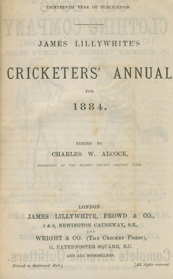 Edited by Charles Alcock. Thirteenth and fourteenth years of issue, covering the 1883 and 1884 seasons. Known as the "Red Lilly", this annual was the last of three annuals published by the Lillywhites, the others being the Companion and the Guide. It lasted for 29 editions between 1872 and 1900, with two issues of 1872. From 1885 onwards the Annual incorporated John Lillywhite's Cricketer's Companion.