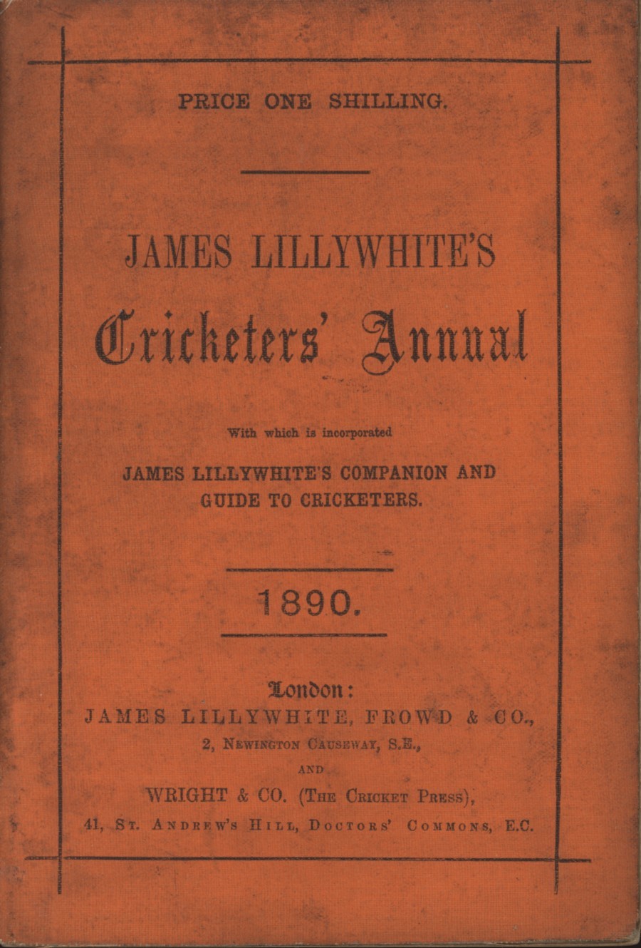Nineteenth year of issue, covering the 1889 season. Known as the "Red Lilly", this annual was the last of three annuals published by the Lillywhites, the others being the Companion and the Guide. It lasted for 29 editions between 1872 and 1900, with two issues for 1872. From 1885 onwards the Annual incorporated John Lillywhite's Cricketer's Companion.