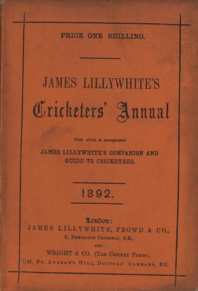 Cricket » Cricket Books » Lillywhite's Cricket Annuals » JAMES LILLYWHITE'S CRICKETERS' ANNUAL FOR 1892