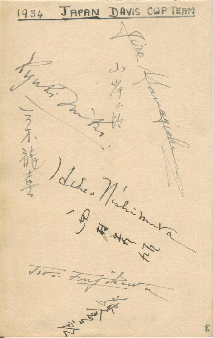 Other Sports » Tennis » Tennis Memorabilia » General » JAPANESE DAVIS CUP TEAM 1934 TENNIS AUTOGRAPHS