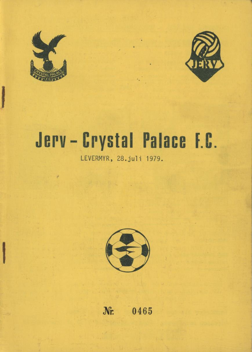 JERV V CRYSTAL PALACE (FRIENDLY) 1979-80 FOOTBALL PROGRAMME