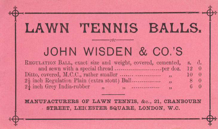 Original advertisement for Lawn Tennis balls, as manufactured by John Wisden & Co.