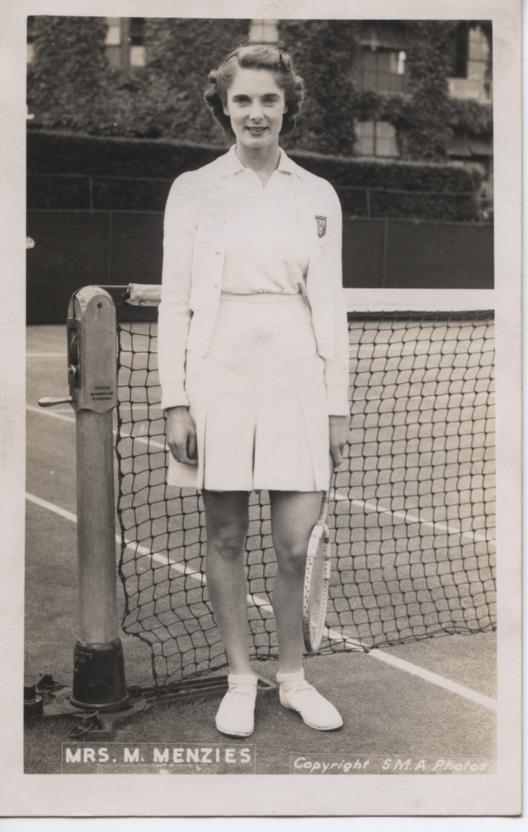 Tennis postcard. Real photograph of British ladies tennis player Mrs M. Mendes (nee Stammers) copyright of SMA Photos, post 1939. Postally unused. Remains of mount on reverse. In very good condition.