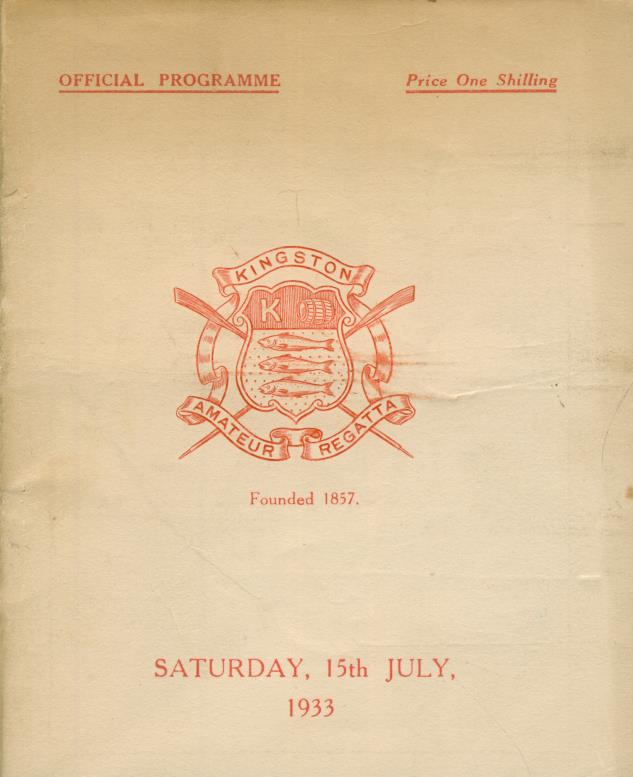 KINGSTON REGATTA 1933 OFFICIAL PROGRAMME