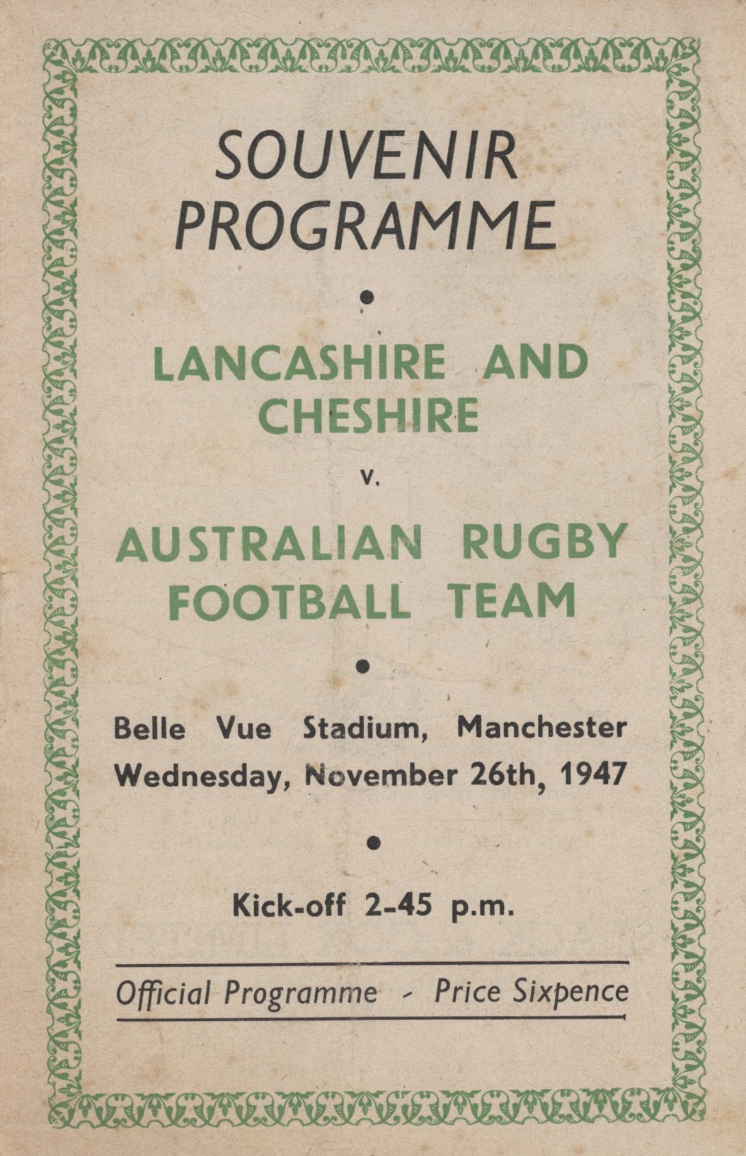 Rugby Union » Rugby Union Programmes » Australia » LANCASHIRE & CHESHIRE V AUSTRALIA 1947 RUGBY UNION PROGRAMME