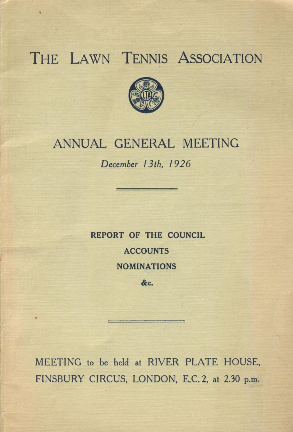 THE LAWN TENNIS ASSOCIATION ANNUAL GENERAL MEETING 1926