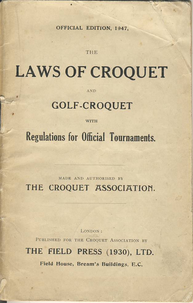 THE LAWS OF CROQUET: OFFICIAL EDITION 1947