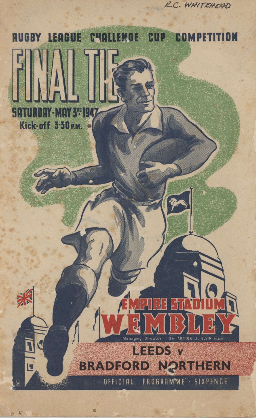 Official progamme for the 1947 Challenge Cup Final between Leeds and Bradford Northern, played at Wembley on May 3rd, 1947.