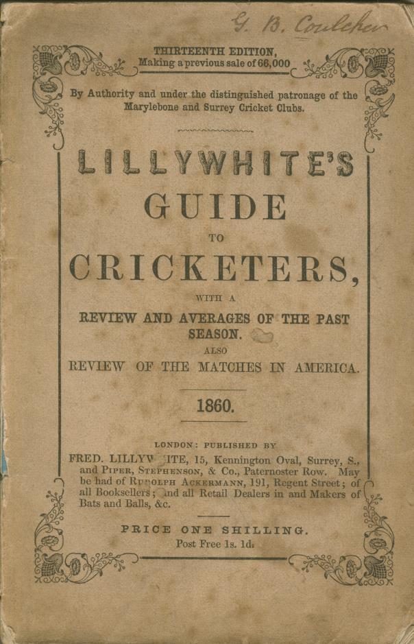 Fred Lillywhite's guides were published annually from 1849 to 1866. The work was subequently incorporated with John Lillywhite's Cricketer's Companion, the third issue of which, published 1867, is called the 23rd edition of the Guide. This is the thirteenth edition.