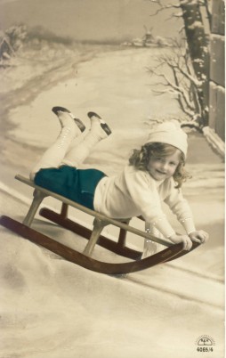 LITTLE GIRL ON A SLEDGE postcard