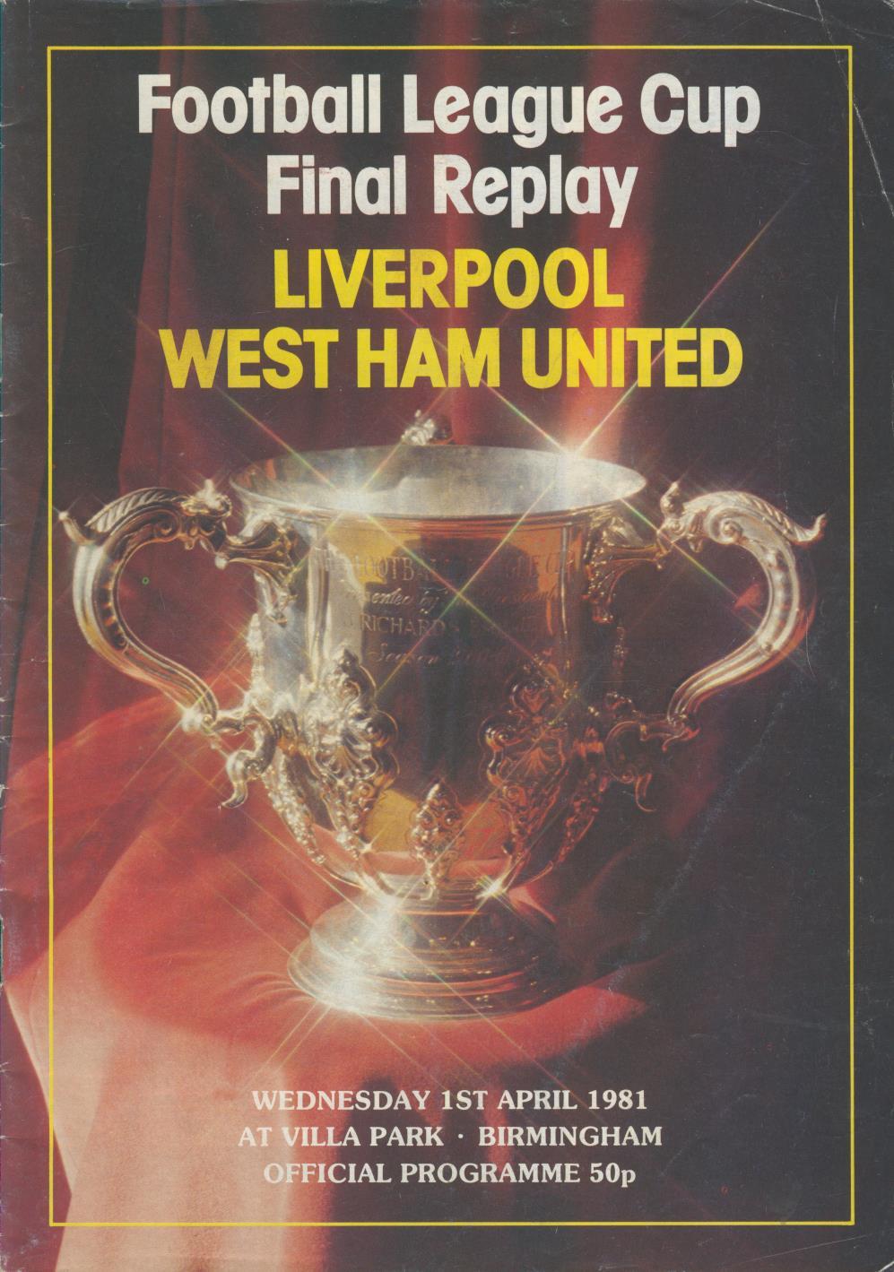 Official programme for the 1981 League Cup Final Replay between Liverpool and West Ham United, played at Villa Park.
