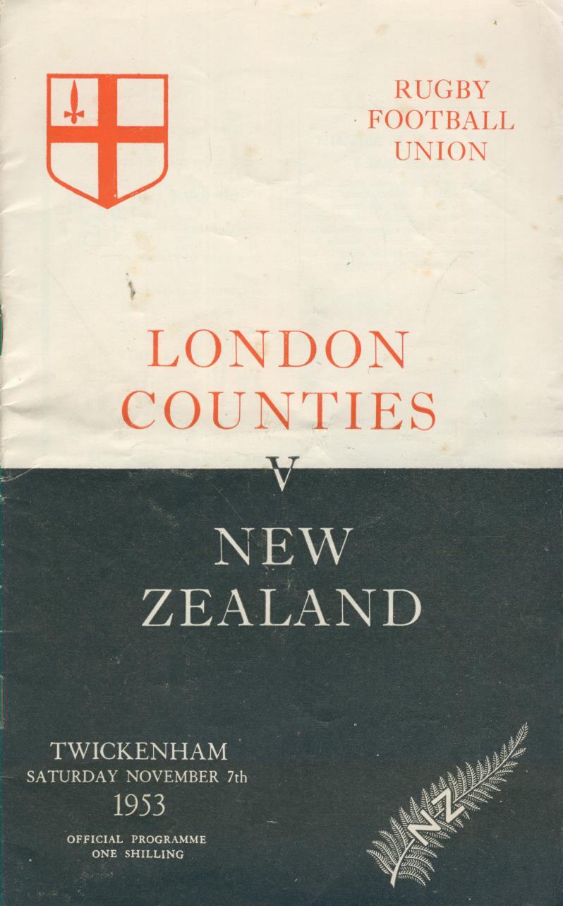 Official programme for the tour match between London Counties and New Zealand at Twickenham on November 7 1953. The All Blacks won 11-0.