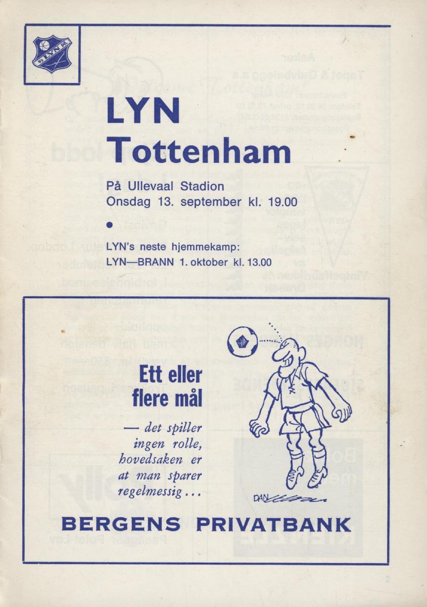 LYN OSLO V TOTTENHAM HOTSPUR (UEFA CUP 1ST ROUND 1ST LEG) 1972-73 FOOTBALL PROGRAMME