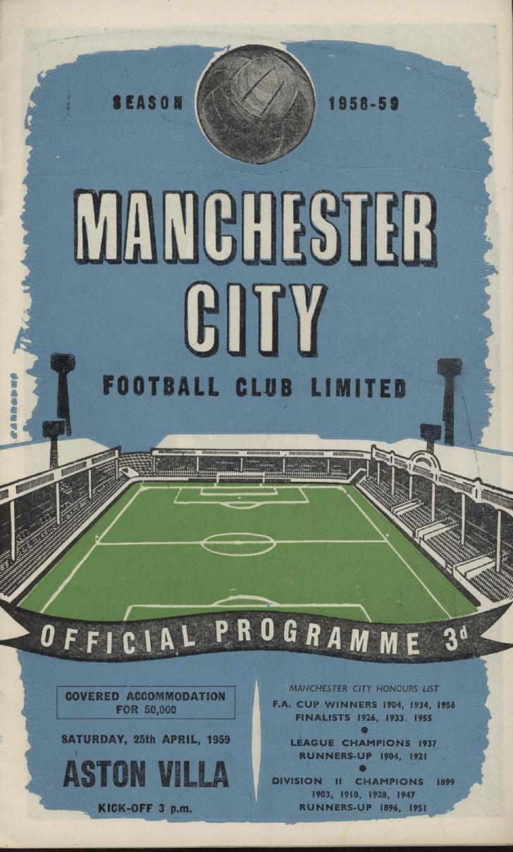 Football programme for the match between Manchester City v Aston Villa on 25th April 1959.
