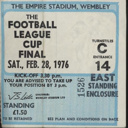 Ticket for the 1976 League Cup final at Wemley on February 28th 1976.