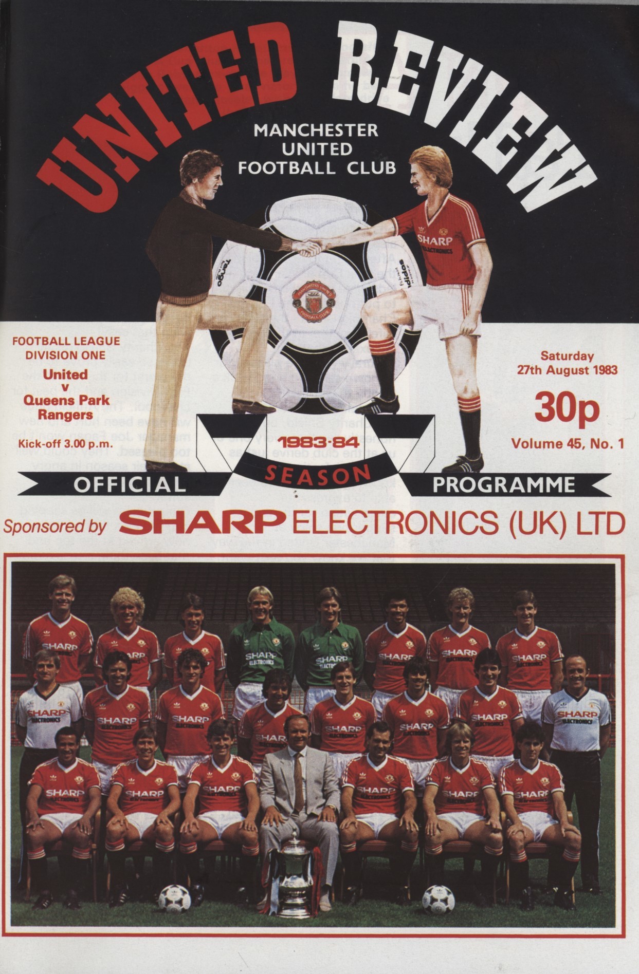 Bound volume of 27 official programmes for matches played at Old Trafford during the 1983-84 football season. United finished 4th in the First Division. Includes all league (21), League Cup matches (2) and European Cup Winners Cup matches (4).