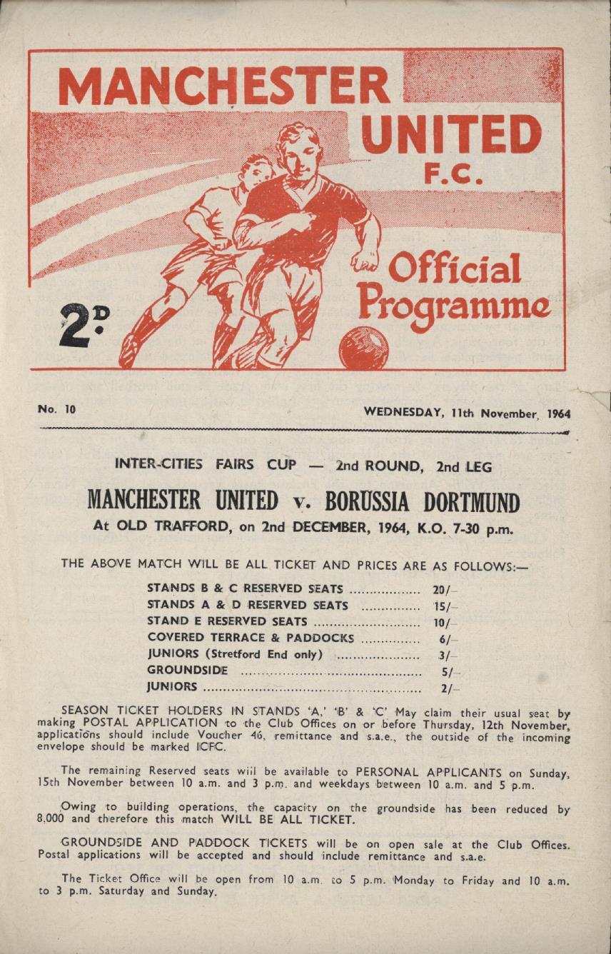 Official programme for the match played at Old Trafford on November 11th, 1964.