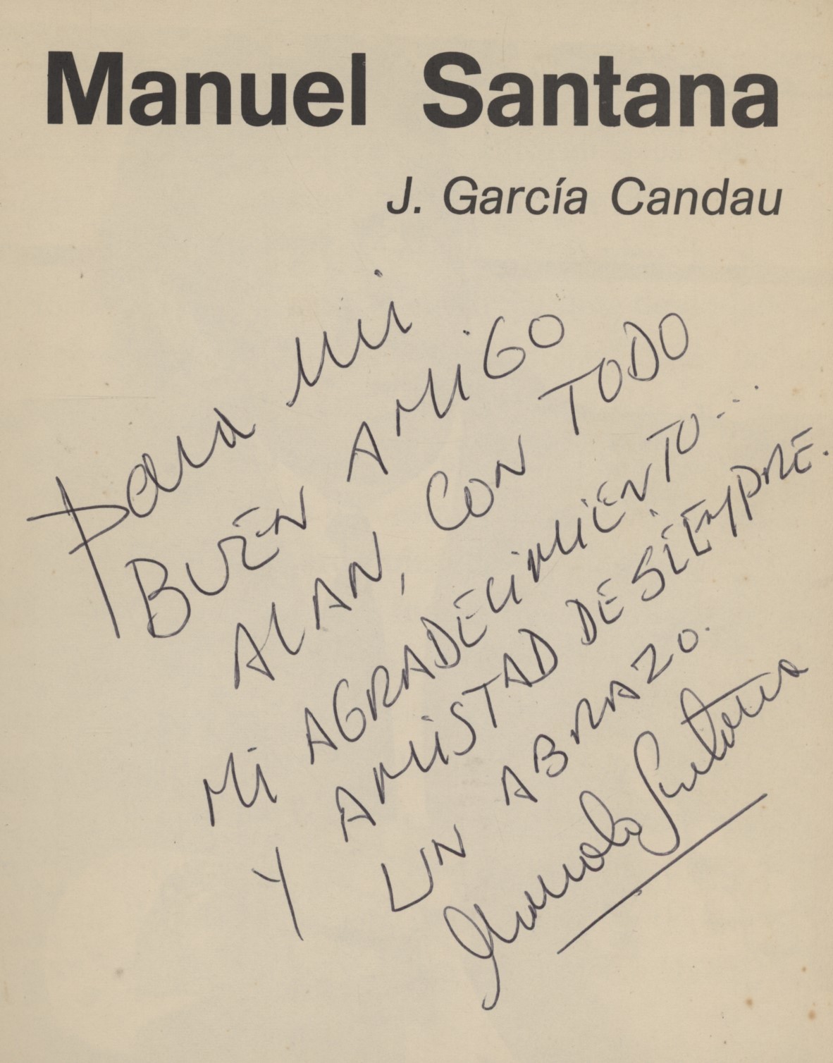 8vo. 95pp. Paperback. Covers lightly rubbed. Minor foxing to some pages. A good copy. Signed by Santana to title-page with a warm dedication in Spanish to Alan (Chalmers), the tennis collector from whose collection the book comes.