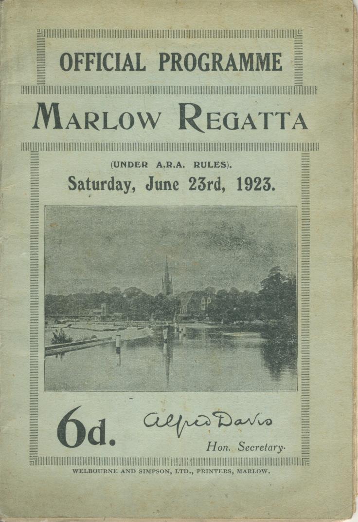 Official programme for the Marlow Regatta, Saturday June 23rd, 1923.