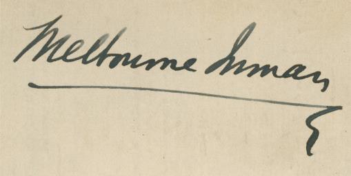 Small piece of white card. Signed very nicely in black ink by Melbourne Inman.