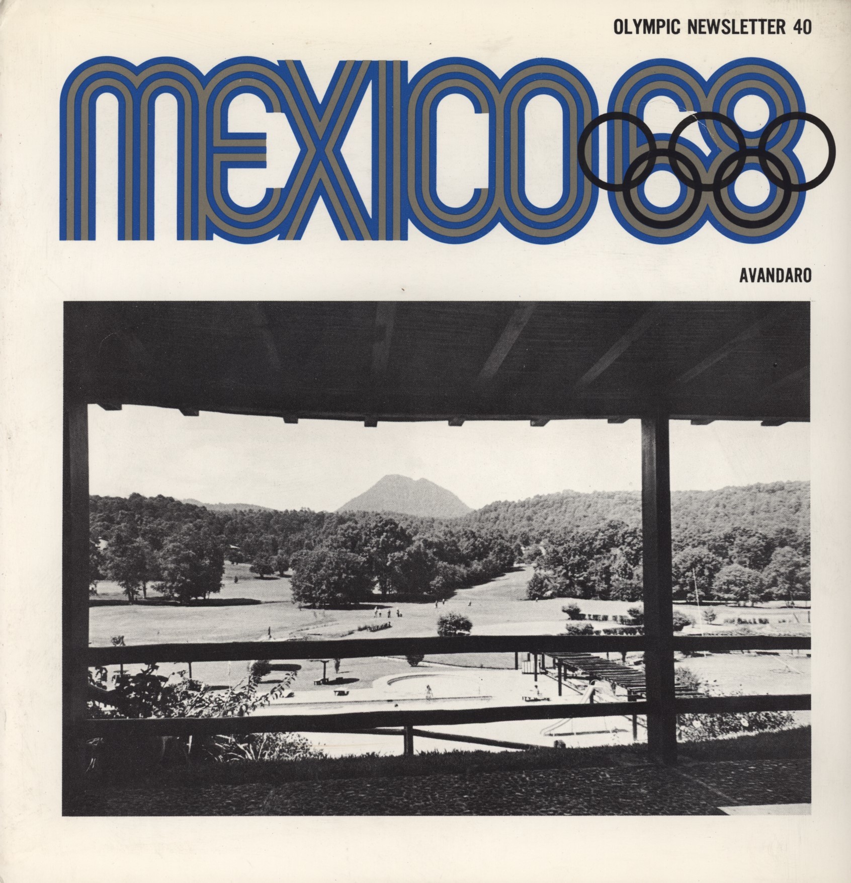 From the official newsletter series documenting the Mexico Olympics, this issue surveying the venue for equestrian events held at the Avandaro Golf Club. Also including the Pictorial Review no.40 insert, featuring an illustrated summary of Mexico's contribution to the XIV Milan Triennial exhibition which was based on the design scheme for the Games.