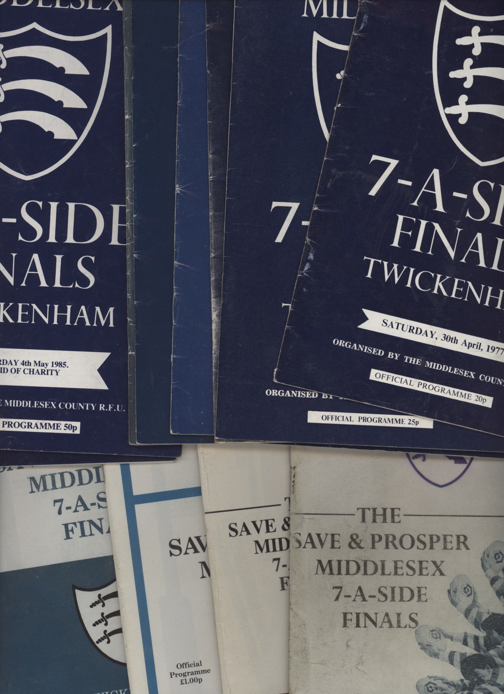 Official Rugby Union programmes from the Middlesex 7's tournaments. A full run from 1977 to 1992, with just the 1987 edition missing.