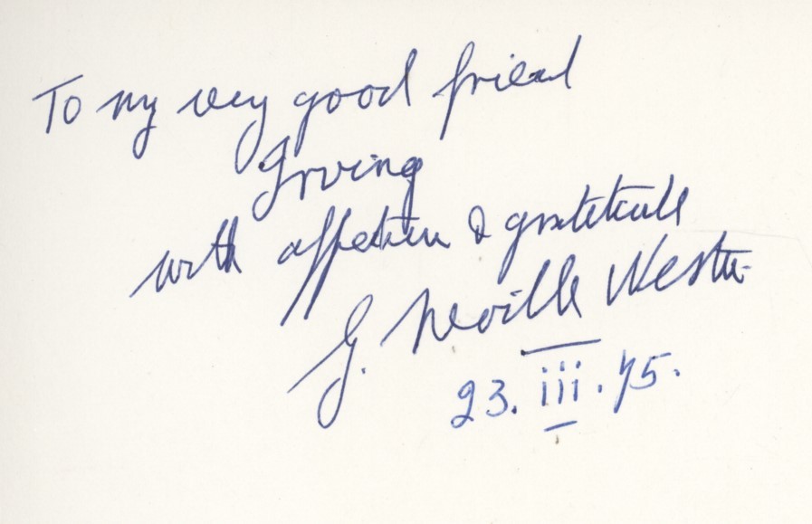 Second Edition. 8vo. [v] + viii + [2] + 52pp. 1 illustration. Stiffened card covers with title in black lettering to upper board. Very good condition. No.3 of a Limited Edition of 50 copies each numbered and signed by the author. This copy was presented to Irving Rosenwater with a short hand-written dedication to front pastedown. Also slipped in is a note from the well-known cricket book dealer E.K. Brown stating that "I am more than pleased for the kind dedication" - this edition was dedicated by Weston to Brown. [Padwick, 41]. From the collection of Irving Rosenwater.
