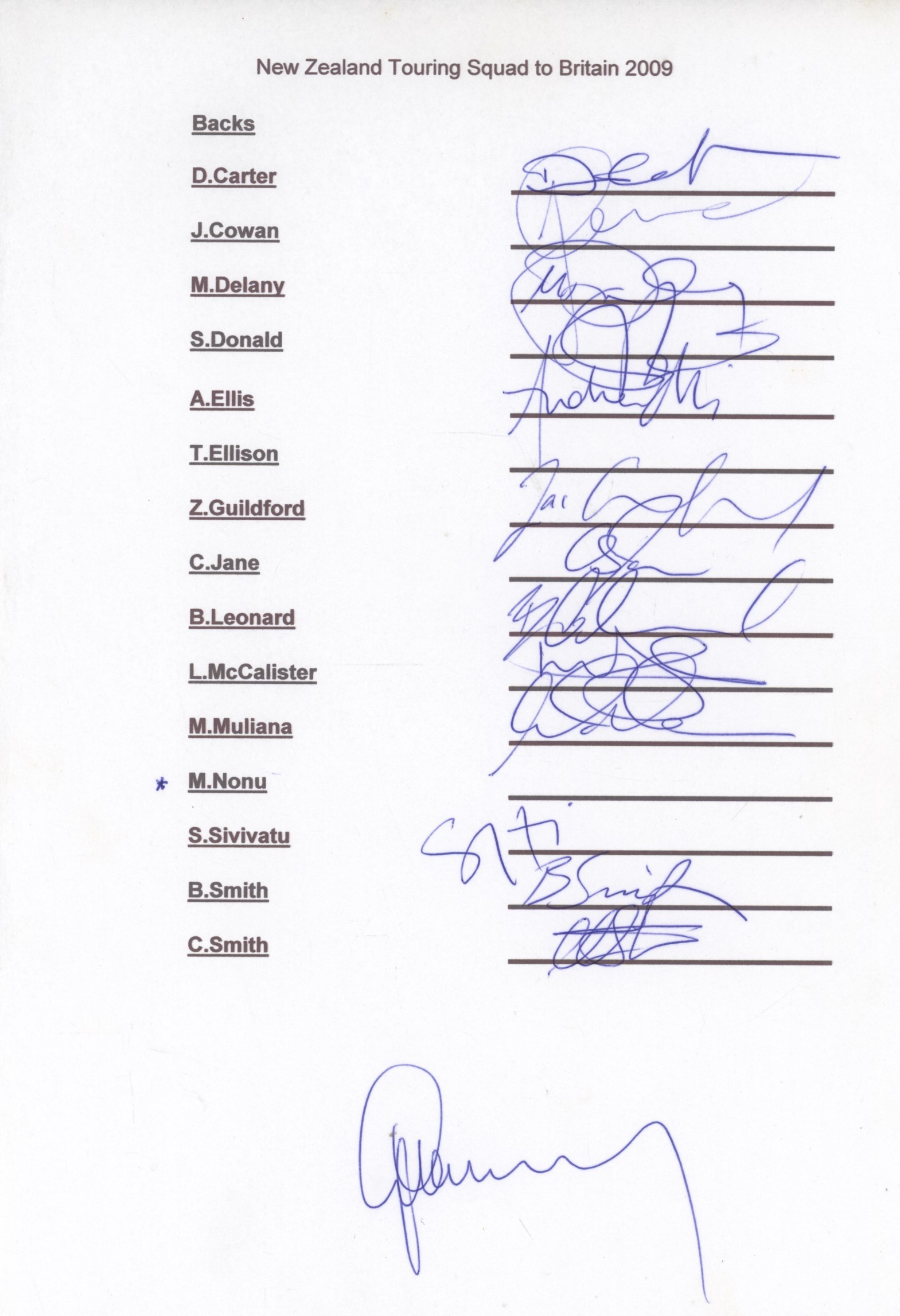 Rugby Union » Rugby Union Autographs » General Rugby Autographs » NEW ZEALAND 2009 (TOUR TO EUROPE) RUGBY UNION AUTOGRAPHS