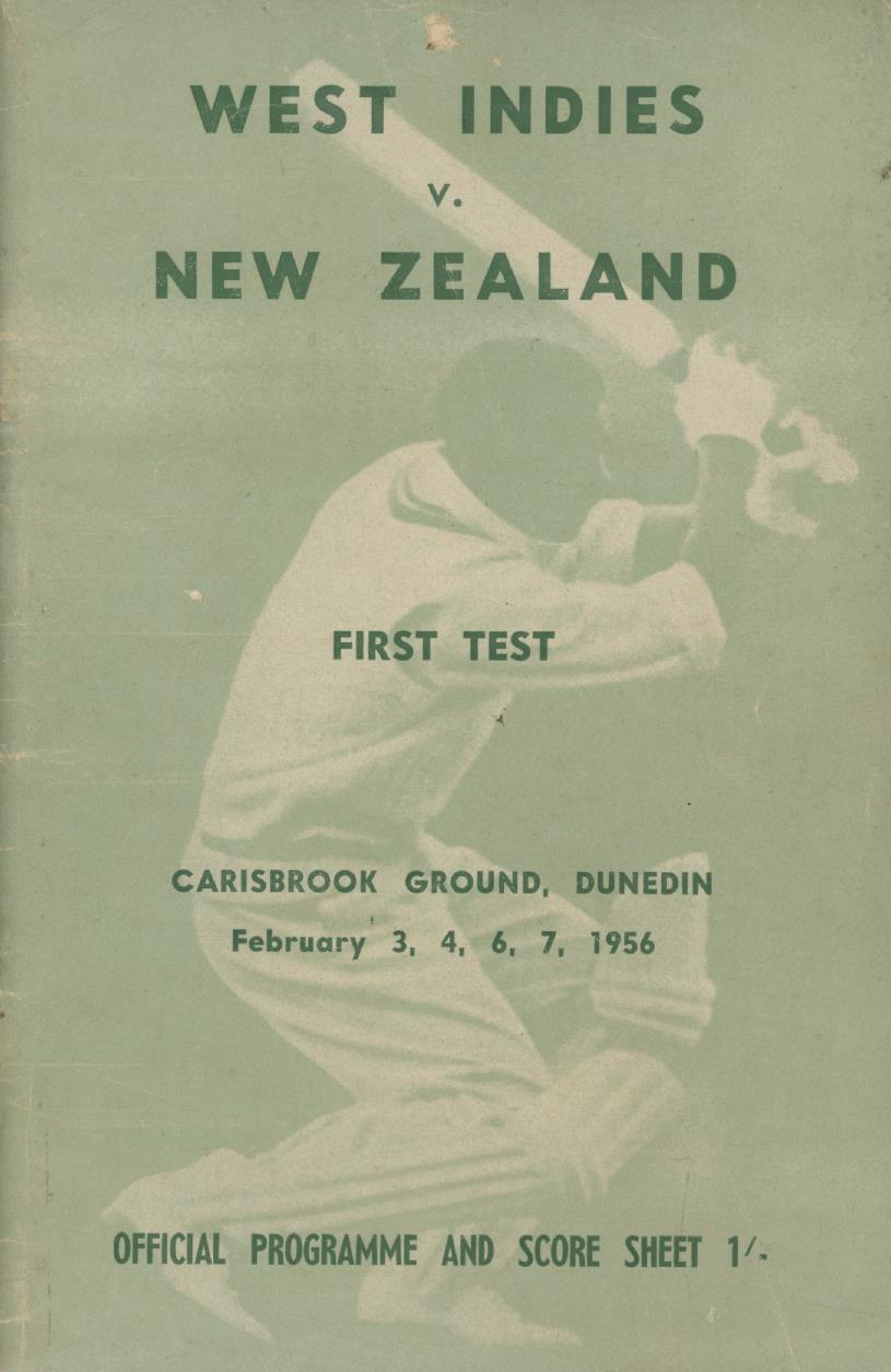 Official cricket programme for the match played in Dunedin on February 3-7, 1956. West Indies won the match and the series although in the final match New Zealand won their first ever Test match.
