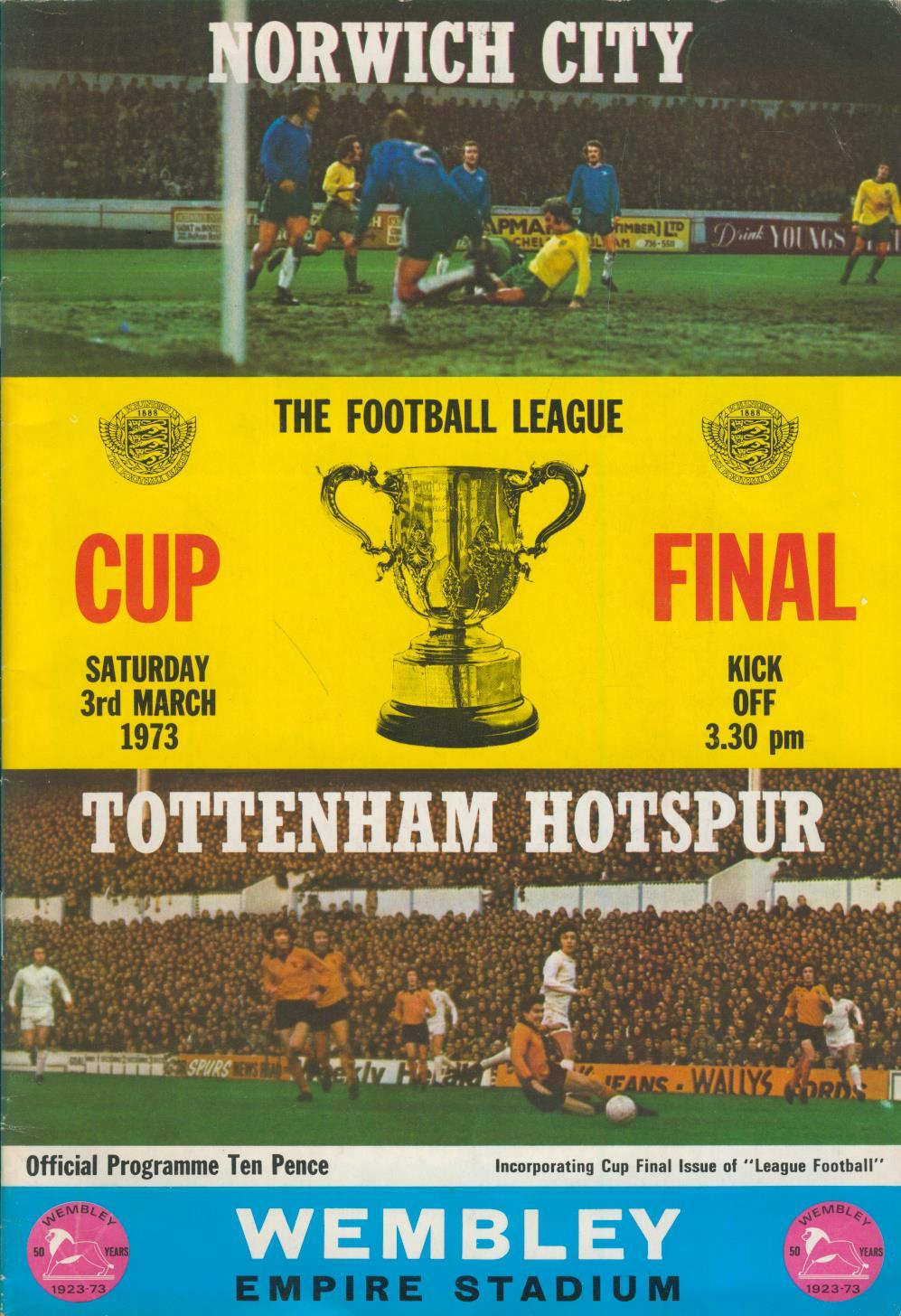 Official programme for the 1973 League Cup Final between Tottenham Hotspur and Norwich City.