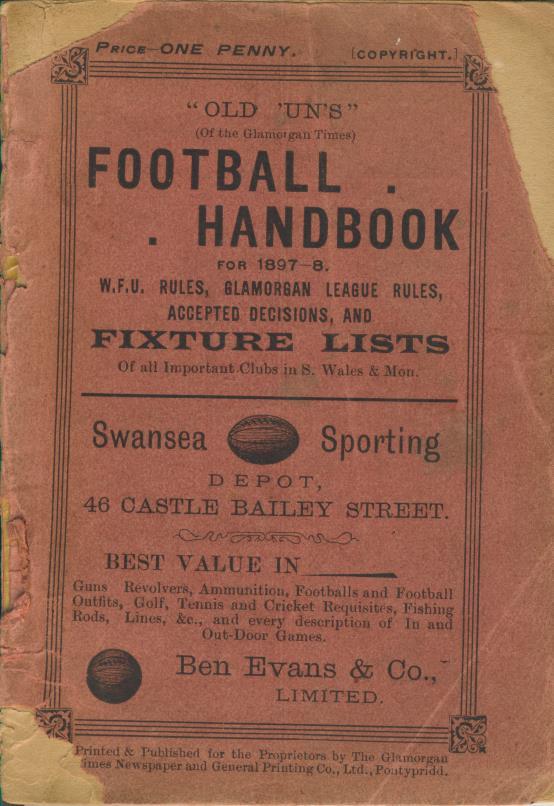 Laws and fixtures for the leading South Wales clubs. With two fold-out team photos of the Glarmorgan team of 1897 and curiously the Glamorgan cricket team although there's no other cricket coverage in the book.