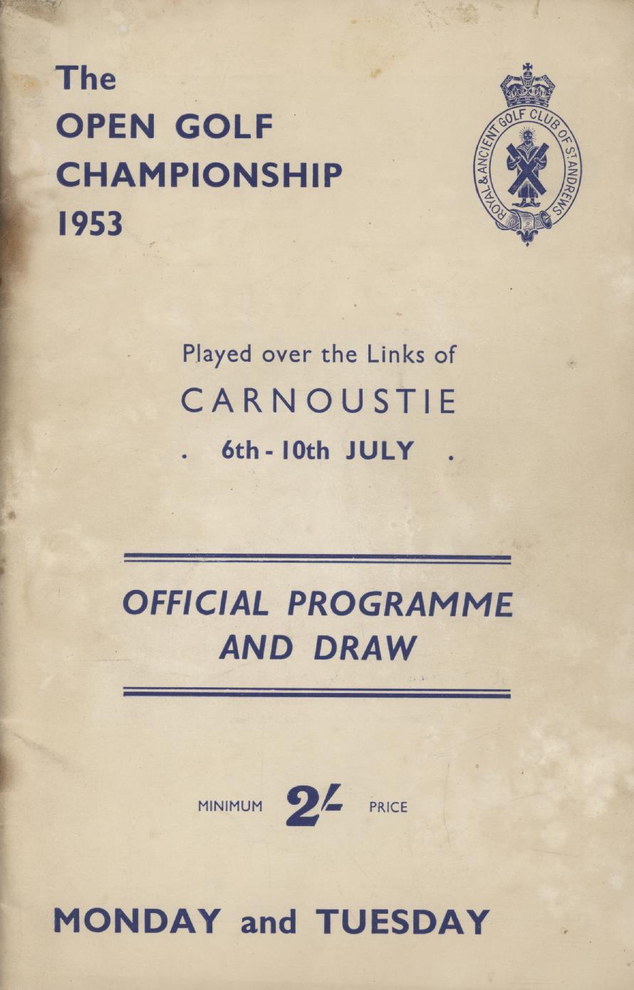 The official programme for Monday and Tuesday of the 1953 Open Championship played over the Links of Carnoustie. The title was won by Ben Hogan of America, in his only ever appearance at the Championship.