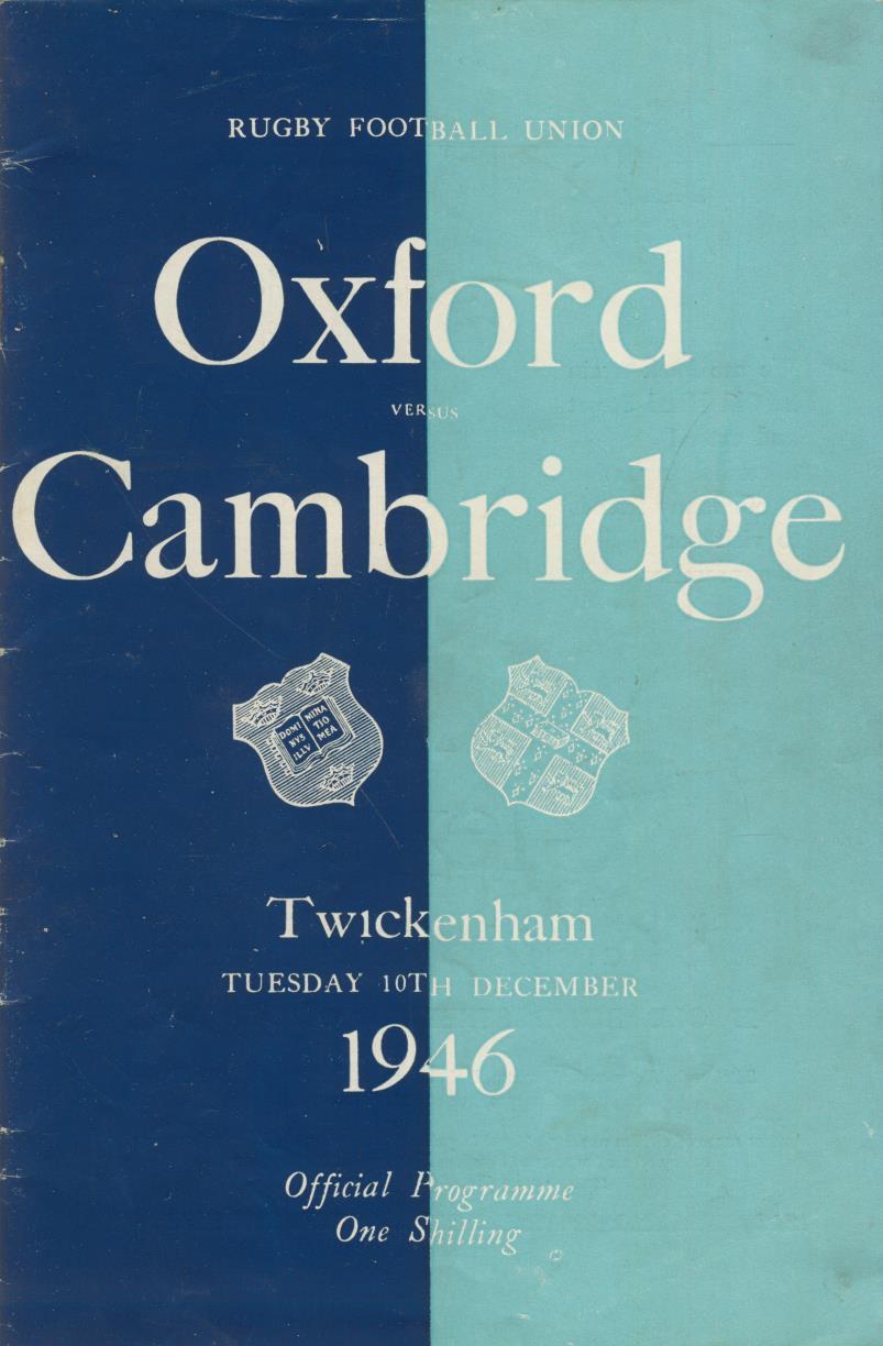 Official programme for the Varsity rugby match played on December 10 1946. Oxford won. Playing at stand-off for Oxford was Martin Donnelly, the New Zealand Test cricketer.