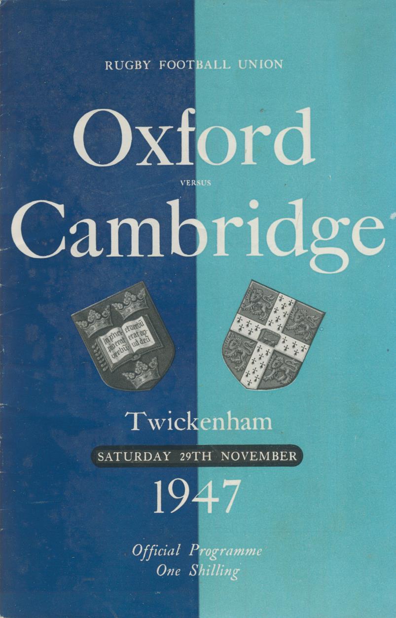OXFORD V CAMBRIDGE 1947 RUGBY PROGRAMME
