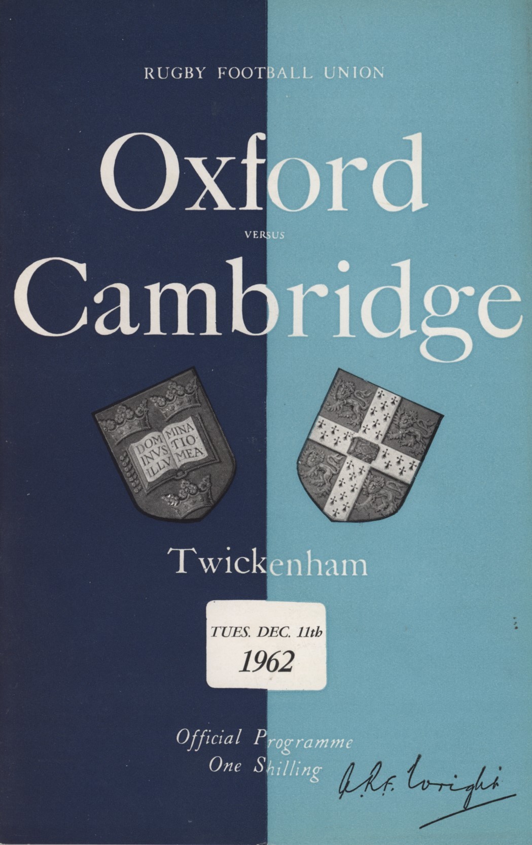 OXFORD V CAMBRIDGE 1962 RUGBY PROGRAMME