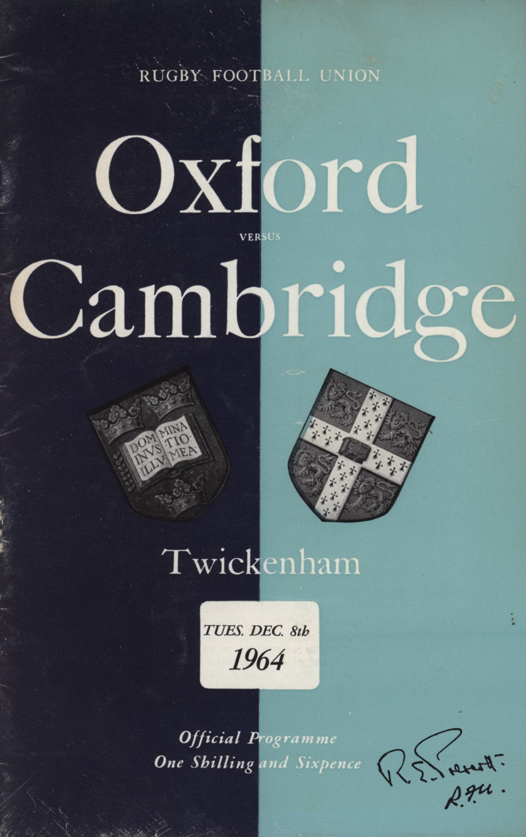 OXFORD V CAMBRIDGE 1964 RUGBY PROGRAMME