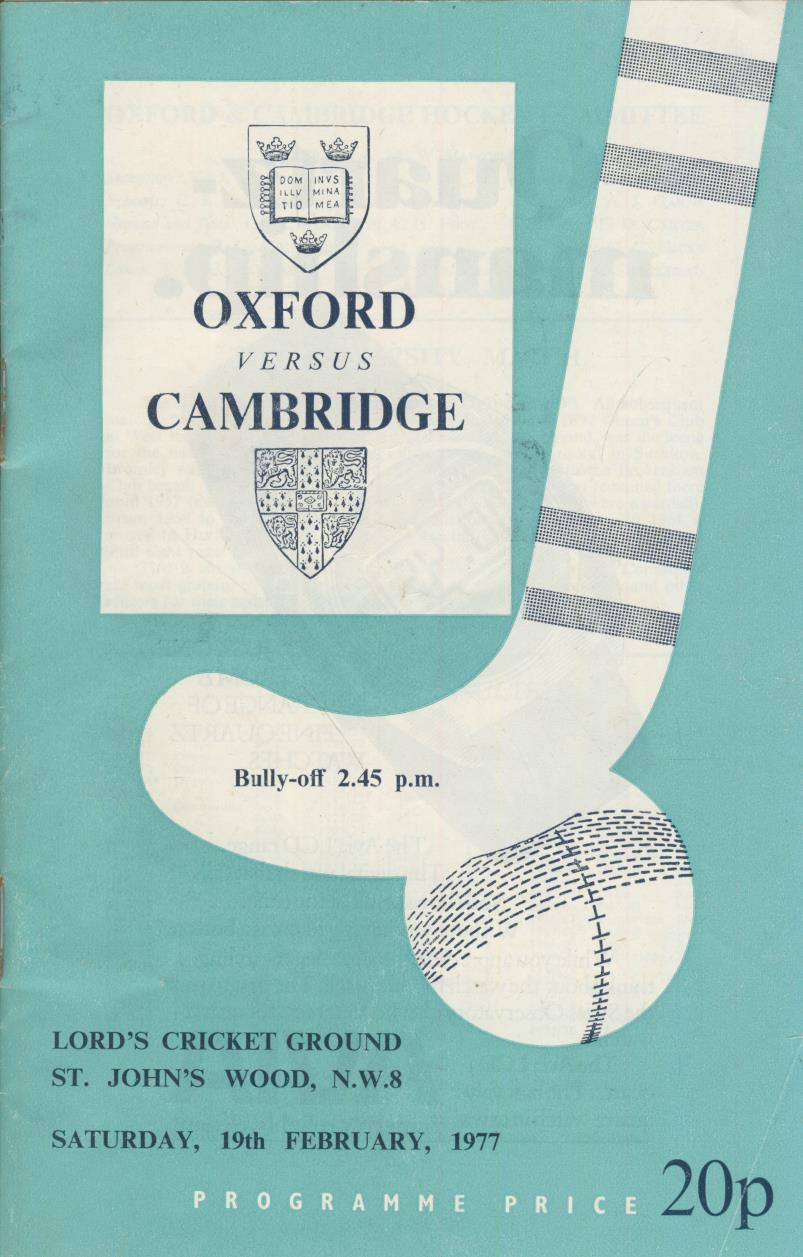 OXFORD V CAMBRIDGE 1977 (LORD'S) HOCKEY PROGRAMME