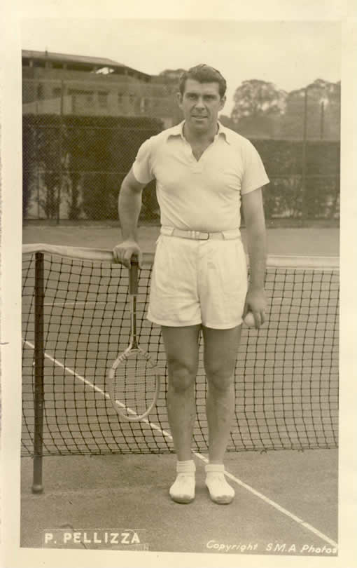Tennis postcard. Real photograph by SMA Photos. Pellizza was a Wimbledon quarter-finalist in 1946. Postally unused. No printing to reverse. Small area of paper transference to reverse, where removed from an album. Very good.