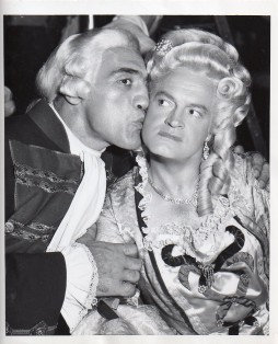 Original Press boxing photograph of the Italian giant with Bob Hope taken during the filming of "Casanova's Big Night" in 1953.