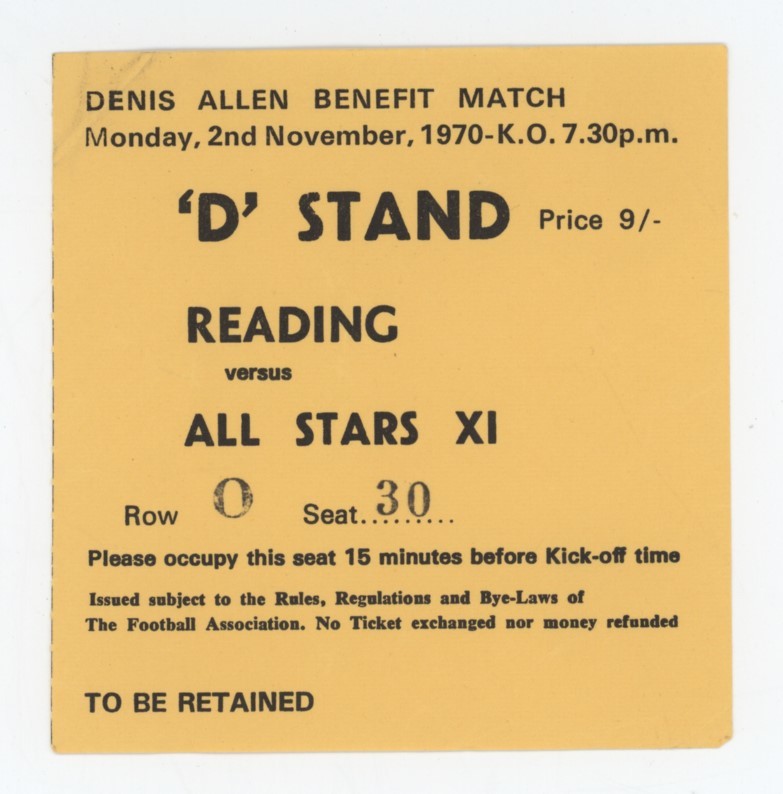 Football » Football Memorabilia » Tickets & Passes » READING V ALL STARS XI (DENIS ALLEN BENEFIT) 1970-71 FOOTBALL TICKET
