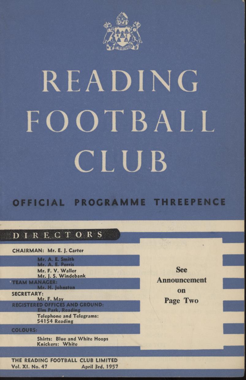 READING V ARSENAL 1956-57 FOOTBALL PROGRAMME