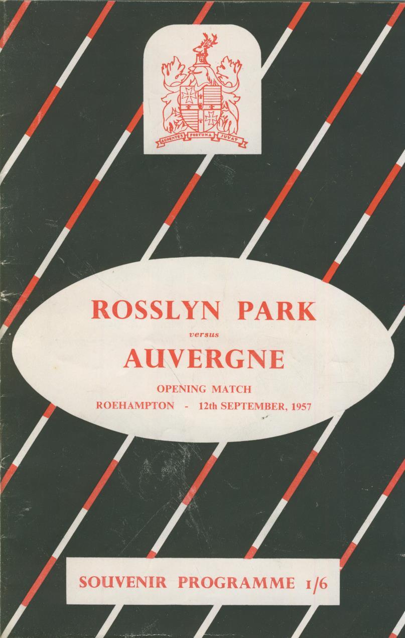 ROSSLYN PARK V AUVERGNE 1957 RUGBY PROGRAMME - OPENING OF THE NEW GROUND IN ROEHAMPTON