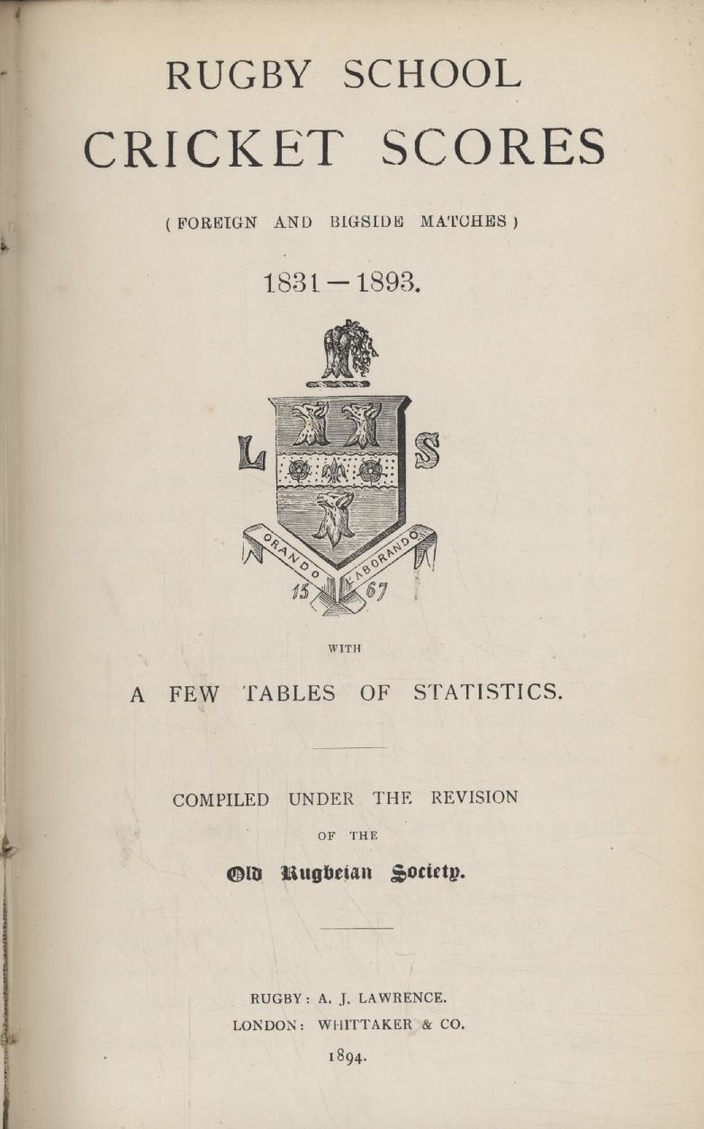 Cricket » Cricket Books » School & University Cricket » RUGBY SCHOOL CRICKET SCORES (FOREIGN AND BIGSIDE MATCHES) 1831-1893