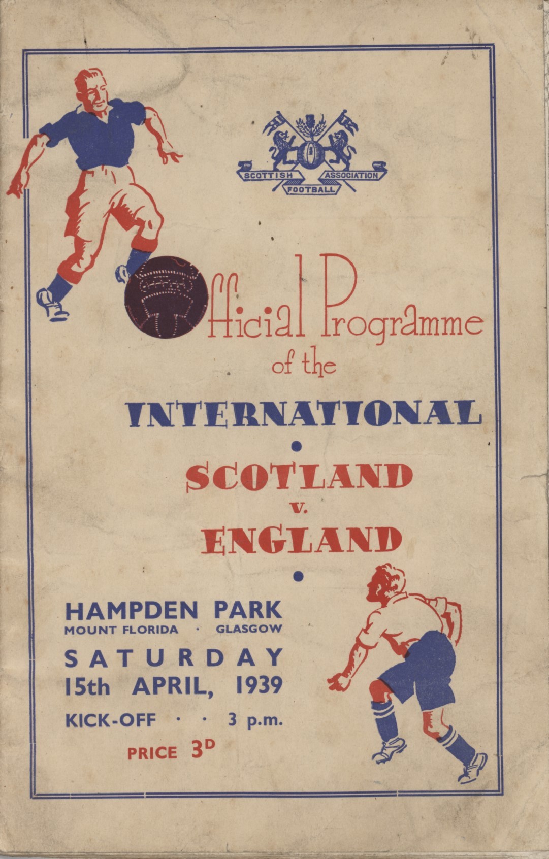 Official programme for the Scotland v England international played at Hampden Park, 15th April 1939. England won 2-1.