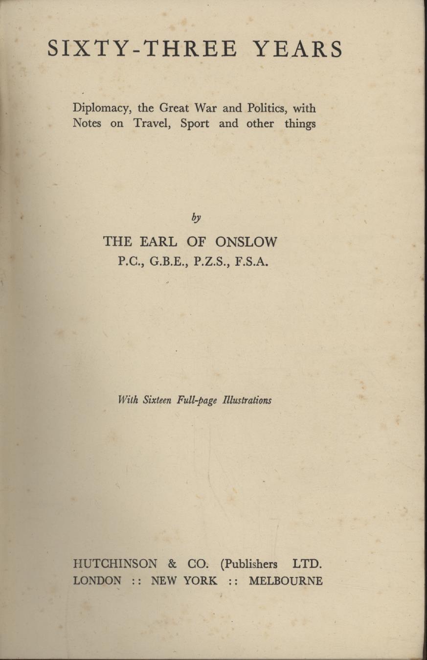 Non-Sport Books » Biographies » SIXTY-THREE YEARS - DIPLOMACY, THE GREAT WAR AND POLITICS, WITH NOTES ON TRAVEL, SPORT AND OTHER THINGS
